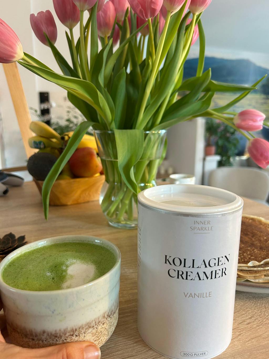 Matcha ist ein fein gemahlenes Grünteepulver, das nicht nur aufgrund seiner tollen Farbe beliebt ist, sondern auch einige gesundheitliche Vorteile mit sich bringt. Das feine, leuchtend grüne Pulver ist sehr reich an Polyphenolen. Polyphenole sind sekundäre Pflanzenstoffe, die nicht nur entzündungshemmend sind, sondern sich auch positiv auf das Immunsystem auswirken und die Zellen vor oxidativem Stress schützen können.